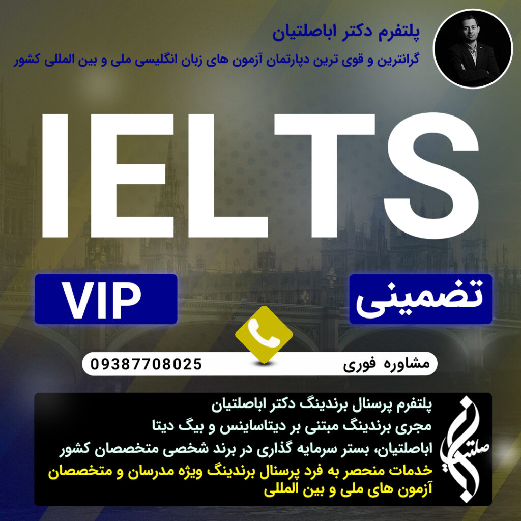 در این پست قصد داریم قسمتی از خدمات پلتفرم vip امتحان های ملی و بین المللی زبان انگلیسی کشور را به کاربران محترم سایت خود معرفی کنیم. پلتفرم vip دکتر علی اباصلتیان به عنوان برند اول امتحان های زبان کشور و نامی آشنا برای داوطلبان امتحان های زبان دکتری می تواند تکیه گاهی مطمئن برای این متقاضیان باشد. پلتفرم vip دکتر علی اباصلتیان در ۱۴ چهارده امتحان ملی و بین المللی زبان خدمات متمایز و نابی به تمام متقاضیان در سطح کشور ارائه می کند. این امتحان های عبارتند از ای پی تی دانشگاه آزاد، ام اس ار تی ، تولیمو و آیلتس و تافل و ….